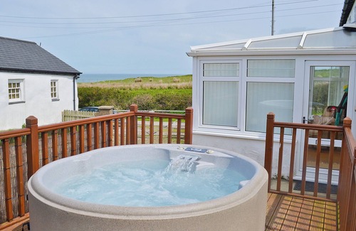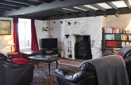 Bathroom: Bath, Cubicle Shower, Toilet. Oil central heating, electricity, bed linen, towels and Wi-Fi included. Initial logs for wood burner included (October-April). Travel cot and highchair.. Lawned garden with patio, sitting-out area and garden furniture. Hot tub (private). Ample parking. No smoking.. This lovely holiday property is in a rural location, on the Llŷn Peninsula, and enjoys a stunning outlook over the dramatic sea and shoreline, boasting its own blissful hot tub. This detached, former farmhouse offers very comfortable and spacious accommodation, with the added benefit of parking for four cars and one boat. Sitting just a short stroll from the beautiful little Porth Colmon harbour and beach, with its own slipway belonging to the owner of the farmhouse, where small boats can be launched. In season, freshly caught lobsters and crabs can be purchased from the local fisherman and occasional visitors include dolphins and seals. A scenic cliff-top walk takes you to the uncrowded golden sands of Treath Penllach, a relatively unknown part of the Peninsula whilst the village of Aberdaron is 6 miles away. Lively Pwllheli, which offers shops, pubs and restaurants, 11 miles away. Beach 50 yards. Shop (seasonal) ¼ mile, pub and restaurant 3 miles.