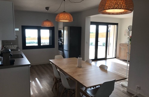 Functional interior, air conditioned and pleasant to live with its open and fully equipped kitchen (Oven, microwave, induction hob, fridge and freezer, washing machine and dishwasher and Nespresso coffee machine) overlooking a spacious living room with sofa convertible, TV, coffee table and buffet.