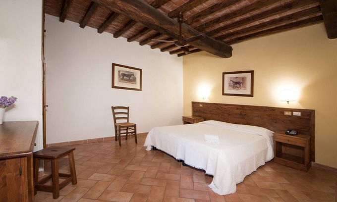 The interior is decorated in a rustic style, enriched with original furniture from the Tuscan village.