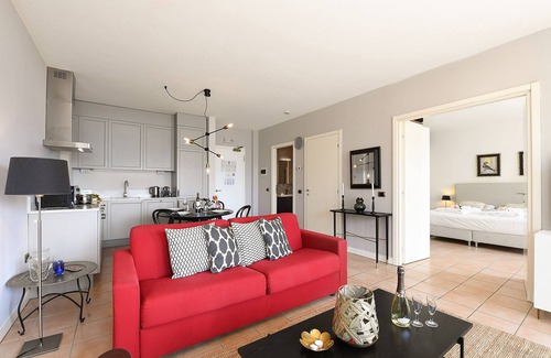 A dining area and modern kitchenette are ideal for preparing simple meals during your stay. The sleeping accommodation includes a master bedroom featuring a double bed (which can be separated into two single beds if required) and the living room sofa that converts into a double bed for 2. A full bathroom with a bath, bidet and WC completes the layout of the apartment.
