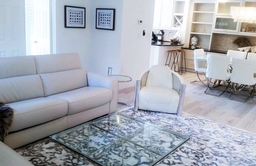 All of the surfaces in our POSHPADZ Properties are cleaned with Anti-virus cleaners which kill 99.9% of viruses for 24 hours. Our brand new "Sandpiper Villa" is a luxury 2 bed 2 bath condo (sleeps 6) located 600 meters from the sand of Jupiter Beach. The unit is located on the ground floor and offers a large outdoor patio which abuts Carlin Beach Park which is located just across from Jupiter Beach. This property has a large 65" smart TV in the living room and flat screen TVs in both bedrooms. Free wifi and cable of course. The community offers a heated pool, tennis courts, basketball court and racquetball court. This property has been renovated & designed by our POSHPADZ Luxury Interiors team. There is even a George Foreman Grill on the patio! The Master Suite offers a luxurious King size bed and flat screen TV, and there is an equally comfortable Guest Suite which offers a Queen size bed . The unit sleeps 6 with a sleeper sofa in the living room. You cant beat the prime location, as it is a short walk across Carlin Park to the sands of Jupiter Beach, and there are a wide variety of excellent restaurants & shops just minutes from your front door!