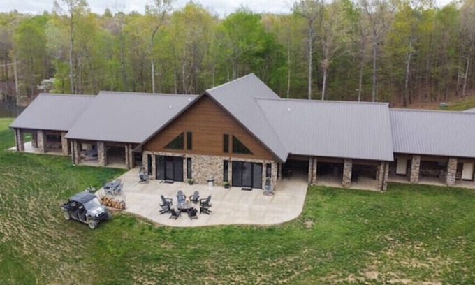 Enjoy relaxing at this one of a kind cabin sure to provide an exciting escape from everyday hustle and bustle. This beautiful cabin is located on over 10 acres. Sip your morning coffee at one of the four outdoor seating areas and then finish your day sitting around the large fire pit with friends or family enjoying a beverage. There are 4 outdoor dining tables, a large grill, and TV to enjoy watching a game while enjoying the beautiful scenery! Lake pictured is for viewing and fishing ONLY.