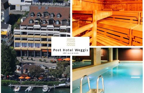 Located in the heart of Weggis, only a short walk from the shores of Lake Lucerne, Post Hotel Weggis offers stylish rooms with beautiful views. It features 2 restaurants, a terrace, a spa and free Wi-Fi. Each of the spacious rooms comes with a bathtub, cable TV, a balcony and a mini-bar. The Deluxe rooms offer views of the lake and the Pilatus, Rigi and Bürgenstock mountains. The 2 restaurants serve local and Mediterranean dishes. The spa features a heated indoor pool, a sauna, a steam bath and a relax area. Guest can also use the on-site gym with panoramic views. Private underground parking is available at a surcharge.