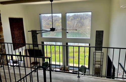 This one of a kind eco-friendly river house has four large and private bedrooms, two full baths, a great room, and kitchen with a big farm sized dining table for family meals. A hot tub is perfectly perched just outside overlooking the river and surrounding forest. Also on premise is WiFi, laundry, grills, an outdoor fire pit (please note that the indoor fireplace is decorative only and not for guest use), games / activities, two smart TVs, and so much more. Bed and bath linens included with the rental, no need to bring your own.