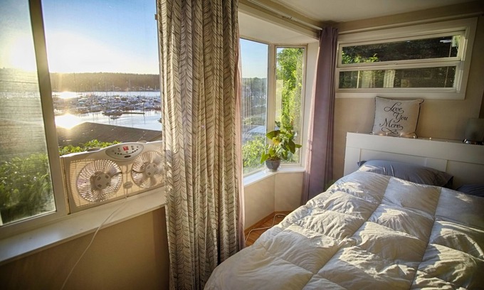 Stunning views of Poulsbo marina and Olympic Mountains. Centrally located on Kitsap Peninsula with easy day trips to Seattle, Port Townsend, and the Olympics. Downstairs apartment in older home is one block from town with famous Sluys bakery and galleries. Includes bedroom with view of marina, side deck off bedroom, private bath with large soaking tub, small exercise room/office space, and living room with full-size fridge, microwave, toaster oven, and coffee pot. Laundry with arrangement. Quiet neighborhood so please be respectful with noise.