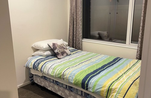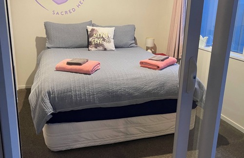 This is a very quaint house in a quiet street. It gets beautiful sun all year round, the comes through in the winter and goes over the house in summer. It has a full house water filter, heat pump with air con and heating and a coffee machine, Netflix, prime and sky. There is a seated BBQ area in the middle of the street as well as a BBQ on the deck inside the house. It’s a lovely place to get away and recharge. A two minute walk to the local pub and pizza shop (and alcohol store) as well as just a stones throw to the beach entrance. There is the potential to sleep 8. A master room with on suite and walk in closet, then a smaller room with a queen bed down the hall way with a toilet and 2nd bathroom next to it, then a children's room with a king single trundler bed that has a single bed that can pull out. The couch in the lounge can fold out to a double easily and you can keep the sheets on it through the day while you fold it back up. There is potential to house a person in the garage also as it is carpeted and full curtain though it is hot in summer in there. You can park out the back of the house upon arrival and enter via the back, with two parks right outside the house also.