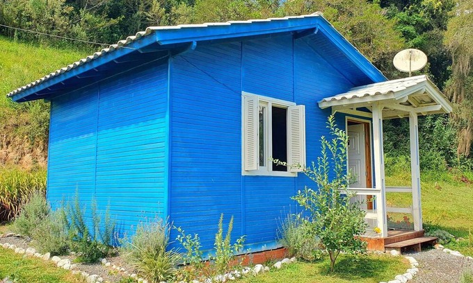Chalé Azul has 20m² of built area. It has 1 bedroom with views of the mountains, 1 complete private bathroom, anteroom, garden and ample parking.
