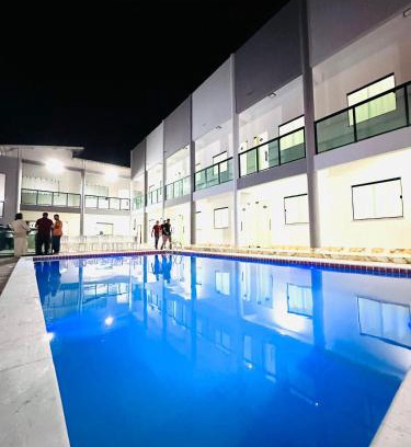 Pousada SB has accommodations in Campo Formoso. There's a year-round outdoor pool and guests can use free WiFi and free private parking. Rooms include a private bathroom, while certain rooms contain a terrace and others also feature a city view. Guests at the hotel can enjoy a buffet breakfast. Speaking Spanish and Portuguese at the 24-hour front desk, staff are willing to help at any time of the day. Senador Nilo Coelho International Airport is 96 miles from the property.