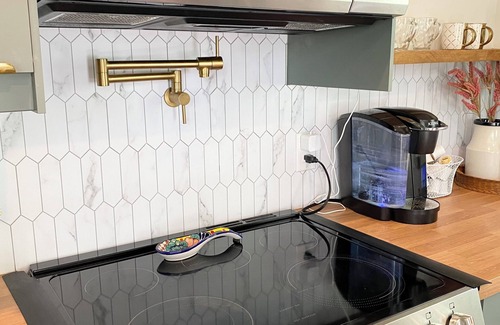 The kitchen is stocked with pots,pans, baking sheets, and small appliances. If you’re needing some time out of the sun, there is a Roku TV for you to rest and recharge! Please use your login information for online streaming services.