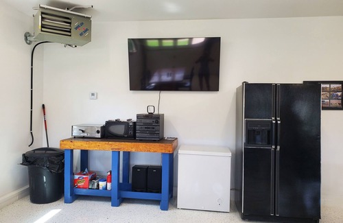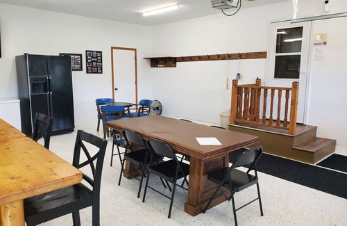 Prairie Pines Lodge is a very private, 15 acre farmstead with a remodeled, single story, ranch-style home with freshly finished basement. Complete kitchen fully equipped with all amenities. 7 full size and 2 queen size beds, 2 full baths with walk-in showers, laundry room, living room w/ 50" TV, large "gathering area" in the remodeled garage with smart TV, separate AC and heating controls for year round comfort. Hang out on the deck or by the fire pit. Large parking area with power available for boats or SnoBears. Waterfowl hunting opportunities on private land surrounding the lodge. Please contact us for more information and availability.
