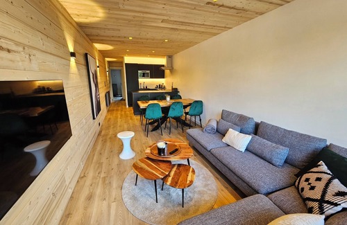 - Grand Standing, fully renovated 2-bedroom apartment, south-facing balcony overlooking slopes, beds made on arrival, in Pra Loup