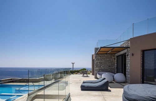 A complex of 2 brand new luxury 3bdr(ensuite bathroom)villas each of them with a private 50spq infinity pool,and bbq. An ideal fit for large groups who want to spent some quality time together but don't settle for less. Can get devided in two almost identical villas yet,enjoy supreme facilities and total privacy,in a place with breathtaking seaviews,and only a few min away of some of the most beautiful beaches of Crete.A place you will just don't want to get away of!