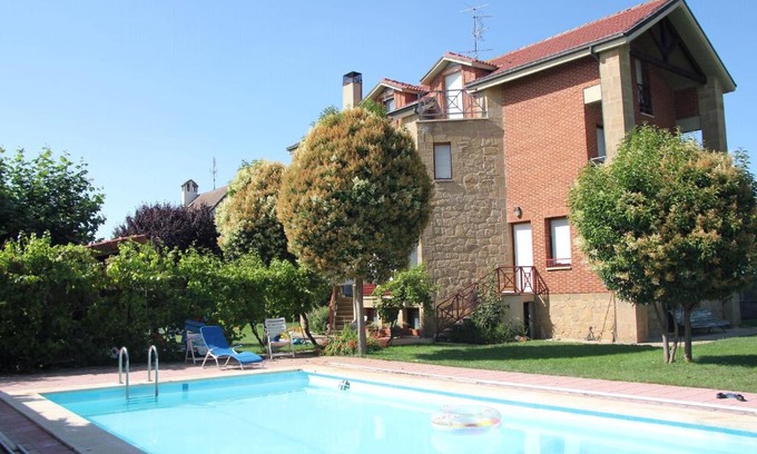 13 miles from Rioja Alta Golf Club in Haro, Preciosa casa independiente con piscina cubierta y gran jardín privados features accommodations with access to an indoor pool and open-air bath. With pool views, this accommodation offers a balcony. The vacation home has a children's playground and a solarium. Offering a terrace and mountain views, the spacious vacation home includes 4 bedrooms, a living room, satellite flat-screen TV, an equipped kitchen, and 4 bathrooms with a shower. The parquet floors, fireplace, and peaceful vibe add to the ambience of the room. The property has an outdoor dining area. Guests at the vacation home will be able to enjoy activities in and around Haro, like canoeing and hiking. Guests can swim in the saltwater pool, go skiing or fishing, relax in the garden, and use the barbecue facilities. Mendizorroza Stadium is 27 miles from Preciosa casa independiente con piscina cubierta y gran jardín privados, while Basque House of Parliament in Vitoria-Gasteiz is 28 miles from the property. Vitoria Airport is 26 miles away.