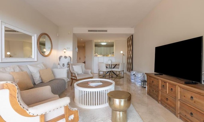 Precioso Apart Elvira Hills. Is located in Marbella, just 1.5 miles from Real de Zaragoza Beach and 1.6 miles from Nikki Beach. This property offers access to a balcony, free private parking, and free Wifi. The apartment features an outdoor swimming pool and an elevator. Featuring a terrace and pool views, the spacious apartment includes 2 bedrooms, a living room, flat-screen TV, an equipped kitchen, and 2 bathrooms with a bath. Towels and bed linen are available in the apartment. The property has an outdoor dining area. Playa Las Chapas is 1.6 miles from the apartment, while La Cala Golf is 5.9 miles from the property. Malaga Airport is 29 miles away.