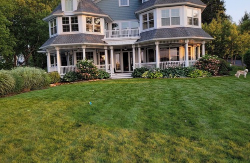 Enjoy beautiful Chautauqua Lake during your stay at this private Victorian-style lakefront home with six bedrooms and five full baths. Situated on 125 ft of lakefront, this special home features a gourmet chef's kitchen with granite countertops, a double wall oven, seating for eight at a round table overlooking the lake, and seating for six at a breakfast bar.