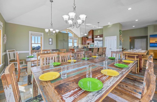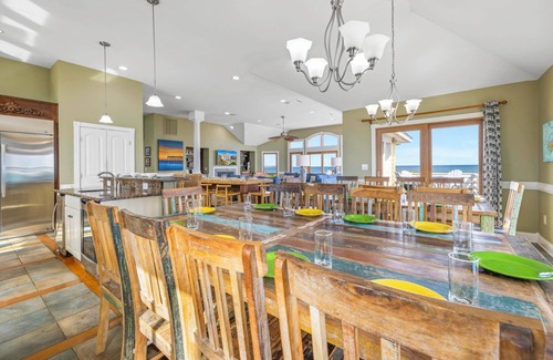 Your search for the perfect wedding venue ends at the Oceanfront Dog Friendly Home w/Pool, Hot Tub, Elevator, Game Room, + Much More! Nestled in picturesque Salvo, North Carolina, this exceptional property offers breathtaking ocean views and a multitude of luxurious amenities that make it ideal for hosting your special day. Picture tying the knot with your toes in the sand, followed by a celebration with family and friends in this spacious and stylish home, designed to create unforgettable memories.