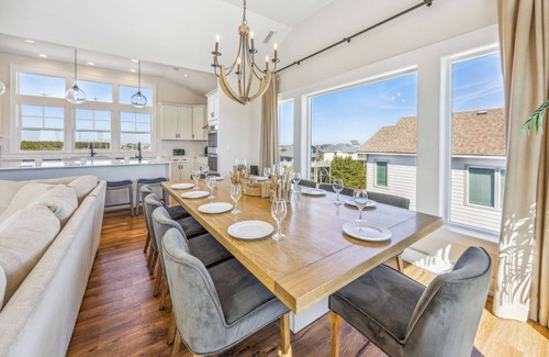Nestled in a tranquil cul-de-sac, Ocean View offers convenient access to a community boardwalk leading directly to the beach—perfect for pre-wedding photos or post-ceremony relaxation. Located in the heart of Outer Banks, you and your guests can explore nearby attractions, enjoy local seafood cuisine at charming restaurants, or indulge in shopping and entertainment options just minutes away. This prime location combined with the extravagance of the property makes it a desirable choice for couples seeking a picturesque setting for their special day.