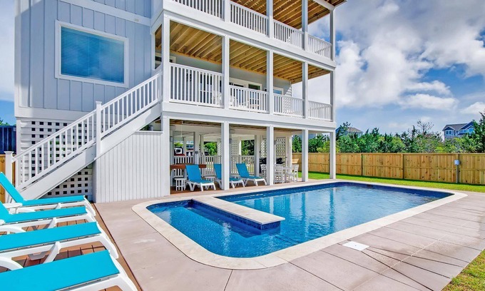 Discover the enchanting Ocean View - Dog Friendly, Pool, Hot Tub, Elevator, Theater Room, a stunning property perfect for your dream wedding getaway in Salvo, North Carolina. With its spacious design featuring 10 bedrooms and 9 master suites, this home provides an elegant and comfortable setting for you and your guests. Imagine exchanging vows with the backdrop of ocean vistas followed by an unforgettable celebration within this luxurious estate, designed not only for relaxation but also for making lifelong memories.