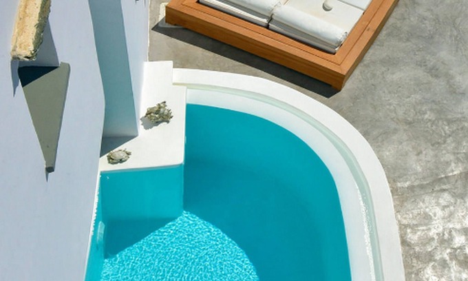 The accommodations, characterized by their refined décor and traditional charm, boast spacious furnished balconies overlooking either a sparkling swimming pool or an outdoor hot tub. Inside, guests are greeted by air-conditioned interiors adorned with traditional flooring, pristine white furnishings, and whitewashed walls. Each unit encompasses a cozy seating area and a private bathroom complete with either a luxurious bathtub or a sleek built-in shower. Thoughtful amenities such as a minibar, coffee machine, flat-screen satellite TV with satellite channels, plush slippers, and snug bathrobes ensure a comfortable stay.