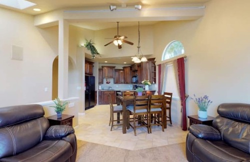 Due to our unique micro-climate, we are often 10°F - 20°F warmer than San Francisco during the day, and we usually cool down at night with the early evening fog that rolls in from San Francisco. This fabulous resort has a cozy gas fireplace in the living room. Relax in the leather reclining sofa and love seat in the living room and enjoy the open floor plan for the living room, dining room, and kitchen. The owners planted the landscaped and manicured gardens for your enjoyment. There are Queen and Pygmy Palms that grace this property. The many varieties of fruit and flowers often fill the estate with an intoxicating fragrance of roses, lavender, star jasmine, and orange, lemon, and apple blossoms. There is something fresh for every season.
