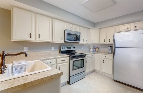 Our kitchen is equipped with dinner plates, bowls, flatware, utensils, coffee mugs, glass tumblers and a selection of pots and pans. Kitchen amenities include electric range/oven, full-size refrigerator, microwave and kitchen sink.