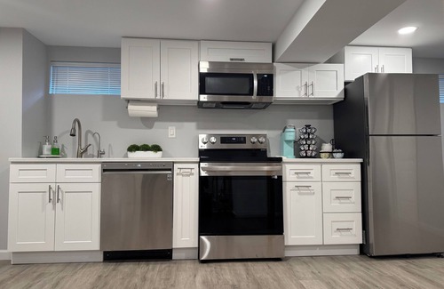 This spacious studiois conveniently situated near theUBS Arena, the brand-new Belmont Park Village Shopping Center, and Belmont Park Racetrack. This makes a great home base for hockey games, concerts, or simply relaxing. The suite has a queen size bed, comfortable sofa bed for extra sleeping space, and a fully equipped kitchen. Guestscan enjoycoffee and tea, WiFi, toiletries, and parking. During your stay you will undoubtedly create wonderful memories.