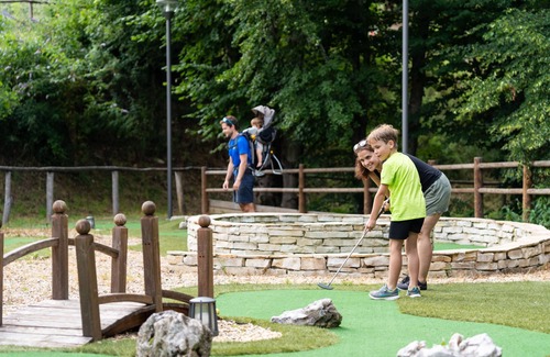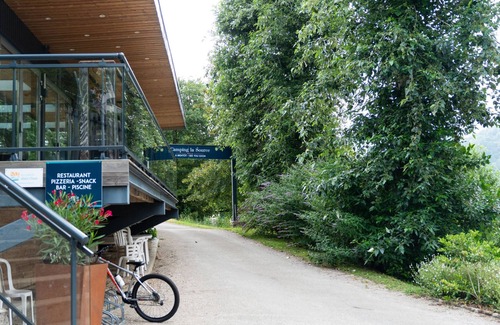 Thérondels: Please note: WiFi network access is only available at the reception and swimming pool. Holiday village "Camping Sunélia La Source". In the resort Thérondels, in a secluded, quiet position, 50 m from the edge of the forest, 50 m from the lake. For shared use: terraced garden, swimming pool angular (130 m2, seasonal availability: 15.Jun. - 15.Sep. pool opening hours: 10:00-19:00). Children's pool, slide, tennis, basketball, boccia, volleyball, children's playground, bathing place. In the house: reception, restaurant, bistro, WiFi, billiard table, playroom, table football, trampoline, shopping facilities. Bus stop "Le lioran" 33 km, bathing lake "Lac de Sarrans" 50 m. Nearby attractions: Presqu'île de Laussac 20 m, Abbatiale de Conques, Laguiole et sa coutellerie, Chateau de Vallon, Centre Natura Bien Etre, Ballades pédestres et VTT. Well-known lakes can easily be reached: Lac de Sarran, Gorges de la Truyere. Hiking paths: Sentier de l'Imaginaire, Parc National de l'Aubrac, Monts du Cantal. Please note: car recommended. Entertainment in the season. Baby equipment (extra), childminding in the season. The photograph shows a typical example.