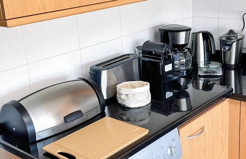 Prepare a home-cooked meal in the kitchen, complete with an oven, a stovetop, and a refrigerator, as well as a coffee maker, an electric kettle, and an ice maker. Bathroom amenities include a hair dryer, a bidet, and towels. And because there's a washer and dryer, you can go a bit lighter on your packing. Other amenities include bed sheets, an ironing board, housekeeping, and air conditioning.
