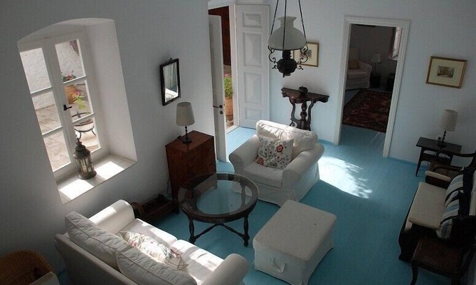 The Courtyard House is an 18th-century stone house in a peaceful but central part of Hydra town. It has the rare advantage of being only a 3 min walk (without steps) from the lovely harbour where all the cafes and shops are.