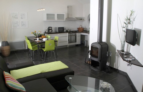 The villa offers a beautiful living room with fitted kitchen, a living room with flat screen TV, WiFi internet access, wood stove.