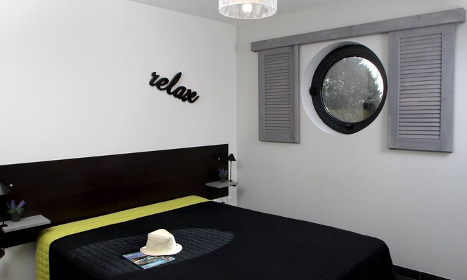 A bathroom with walk-in shower and two bedrooms. The first is a master bedroom with a 160x200 bed, a desk and direct access to the terrace. The second has a bunk bed and a sofa bed. If you do not bring the necessary to garnish the beds, you find inside Bed linen for the whole of your stay