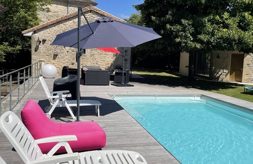 Pretty character house with swimming pool in Entre deux Mers (min 5 nights) has 5 Bedrooms , 2 Bathrooms, and max occupancy of 9 people. The minimum rental for this property is 1 nights, but this can change depending on the season you plan on staying. Previous guests have given good rated it, and VRBO labeled it a top-rated House because of the excellent services rendered by the owner or manager of this House, and has consistently provided great experiences for their guests. Most families or guests that use it recommend it to their friends and some of them are repeat guests. House has a friendly neighborhood, and the Romagne has interesting places to visit. If you want to learn more about the House in Romagne, such as places to visit and things to do nearby, you can check below to learn more.