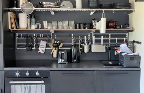 2 well-equipped wet rooms, one ensuite to the main bedroom, nice hot showers and good pressure, and a thoroughly modern kitchen area -- with induction hob, oven, dishwasher, fridge, washer-dryer and all the cooking and eating equipment you need -- leading on to a dining area and beyond that to a cosy yet roomy lounging area. So comfortable you might not want to get off the sofa!
