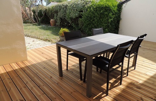 Pleasant enclosed garden of approximately 200 m2 with table, chairs and barbecue