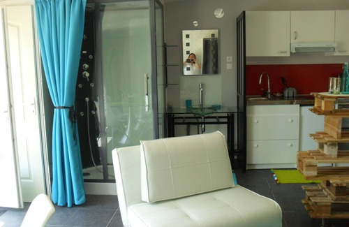30sqm apartment, equipped with a good quality sofa bed and a convertible fireside, fully equipped kitchen (oven, dishwasher, hob), bathroom with shower jet separated by a curtain. Private terrace with garden furniture and sunbathing; barbecue.