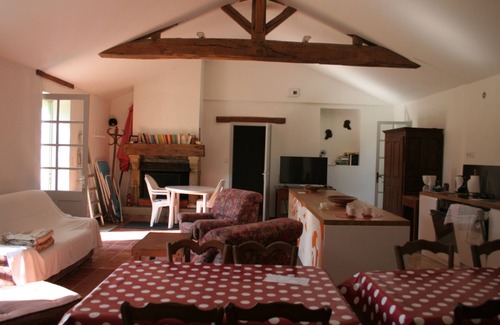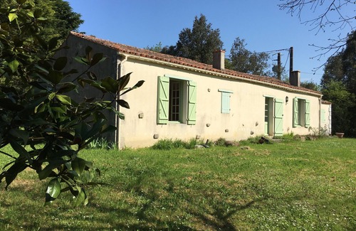 The house is situated on a large property, with woods, streams, a pond and birds. It is a country house built a long time ago and we have renovated. It is covered with old red tiles.