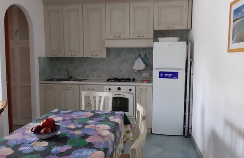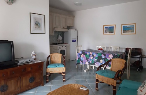 Lovely 80m2 semi-detached house on two levels with a small garden and a veranda with an outdoor table. On the ground floor there is a large living room with a kitchenette and a bathroom. On the first floor there are two bedrooms (one double and one with a single bed and a double or two singles) and a bathroom with shower. Equipped with every comfort: air conditioning, mosquito nets, washing machine, TV, electric and microwave oven, parking space, outdoor shower with hot water, barbecue. Dishes provided for 8 people. Linen (sheets and bath towels) can be provided on request. The nearest beach is 1000 meters away, which can also be reached on foot or by bike. All the main services are within walking distance (market, pharmacy, medical service, bars and restaurants). It is 10 km from the village of Orosei, a lively coastal center, and the same distance from Galtellì and Santa Lucia, which come alive with summer festivals. Within a radius of 4km there are numerous coves with fine white sand and the famous beaches of Bidderosa and Berchida. In the surrounding area there are numerous farmhouses offering typical dishes.