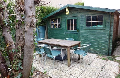 This 70 m2 house is fully furnished and beautifully decorated. It comprises: 1 kitchen opening onto dining/living room, 1 veranda overlooking the garden, 2 bedrooms (1 mezzanine bedroom with study area, wardrobe and 1 double bed; 1 closed bedroom with wardrobe, dressing table and 1 single bed), 1 bathroom with toilet, storage space (large closets, wardrobe, chest of drawers, coat rack, 1 closet), 1 outdoor parking space on boat in front of the gate.