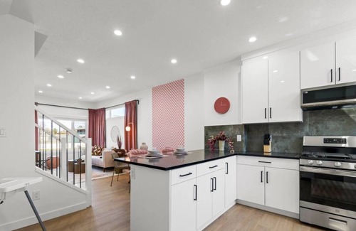 Inside, kick back with your favourite shows on the Smart TV, cook up a storm in the fully stocked kitchen, or get work done with fast WiFi. Whether you're here for business or pleasure, this is your bright and playful home base in Edmonton.