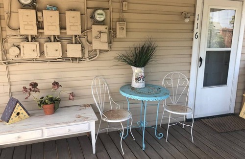 Enjoy your morning coffee on the porch swing and wait for the train to come by. The main bedroom has a queen sized bed and large closet. There is a turntable and some vinyl there for your enjoyment.