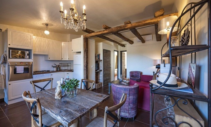 Adjoining another property, but separated for complete privacy by large old wooden panels, it fits into a calm and relaxing setting.