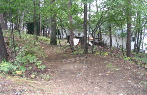 Nice family cottage near Algonquin Park- pretty, private, fully equipped, 3 bedroom, fireplace, BBQ, 2 kayaks/paddles/life preservers, big hammock right on edge of lake, binoculars, bird feeders,deck and dock both have tables/chairs/umbrellas/tiki torches/flowers,. Trail, with tree house, clear deep water, great SW view, sun from 11 AM. Queen , double, and bunks. Parking for 3 cars, Free firewood, and spring drinking water. Perfect!.