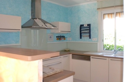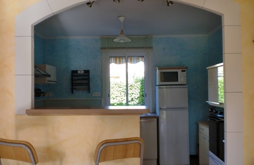 The house has a large living room: living / dining room with TV / DVD and fireplace, as well as an equipped open-plan kitchen, overlooking the garden and the swimming pool.