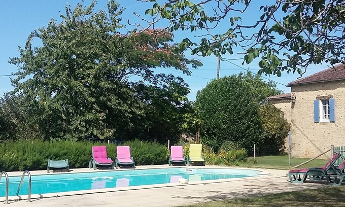 Ancient and restored farmhouse, La Gamardie is spacious, 200 sq.m, and its garden with trees of 1000 sq.m and its large and private pool (10x5 m) are for your private use.