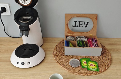 The kitchen is equipped with a stovetop and a refrigerator, as well as a coffee maker, a microwave, and cookware. Bathroom amenities include a hair dryer, towels, and toilet paper. Other amenities include bed sheets, an ironing board, air conditioning, and heating.