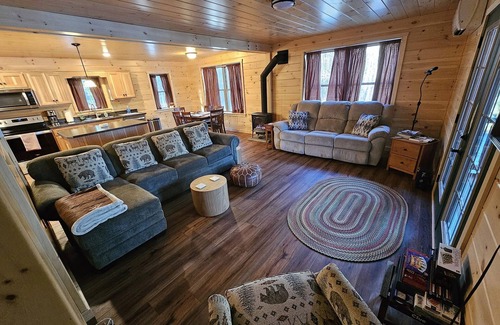 Brand new Cozy Cabin on a small 181 acre pond. Enjoy the cabin feel of knotty pine and a big country porch overlooking the water. Walk in access to the water or ice in the winter. Kayaking, canoeing, ice fishing, snowmobiling and more depending on the time of year. A peaceful location a mile down a private road but 10 minutes away from a grocery store etc. Eagles, loons and fish will be your neighbors as you are in the moment at Price's Point.