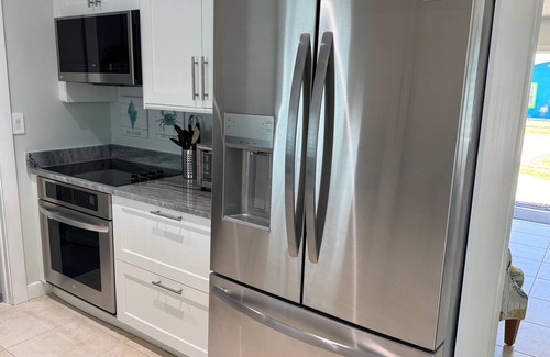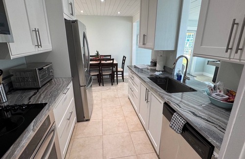 Discover island living at our newly-remodeled waterfront escape in Matlacha on a deep water canal with a private dock (lift is not available for use) and plenty of room to park your truck and trailer in the driveway and front yard. This spacious two-bedroom, one-bath home offers all the comforts: air conditioning, high-speed internet, and a fully equipped kitchen. Ideal for up to 7 guests with a queen-size pullout couch and fresh furnishings. Enjoy endless fun on the water with a deep freezer for your bait and fish, ice maker to fill your coolers and a new dock to tie up your boat. Play shuffleboard and watch the sunset in the back family room. The covered back porch has a gas grill and seating for outdoor entertaining. Perched on the serene waters of Matlacha Pass, our home provides instant access to world-class fishing right from your doorstep. Whether you're angling for snook, redfish, tarpon, or trout, the abundant waters surrounding our property promise endless opportunities for a memorable catch. Perfect for making lasting memories!