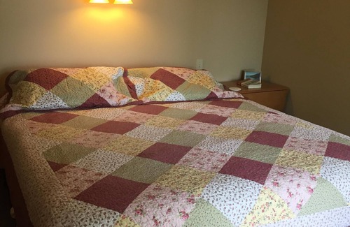 Our "cabin" - built in 2008 - is charming, diligently kept up, very clean, and comfortable (two king beds, a queen bed, and the bunkbeds). Having three full bathrooms makes a world of difference when there is more than one family. You will see that our place is not exactly one of those lavish homes with marble countertops, brand new modern furniture, a TV in every room, air conditioning, and sandy beaches (naturally, they are priced accordingly). However, there are so many reasons that multiple repeat renters say our cabin is like "home," and keep coming back.