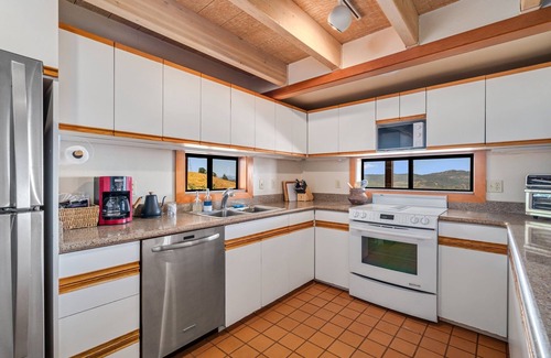 Priest Ranch is a beautiful property on top of a mountain in the Sierra foothills, with views of rolling hills, lakes in the Central Valley and the Coastal Range. This land has been in the same family for six generations, beginning with the Gold Rush and the establishment of Yosemite National Park. The property offers total privacy, with spaces for gathering and nooks for contemplation. This unique architectural home integrates indoor and outdoor living with wrap-around porches to enjoy the hundreds of miles of views. Priest Ranch has a guest house and a lap pool. There are trails on the property and the evenings feature stunning night skies. This vacation rental is located in beautiful Tuolumne County, off Highway 120, leading into Yosemite National Park. It is approximately 27 miles from the park entrance. The 3-level main house has 3 bedrooms and 2.5 bathrooms. The guest house has built-in bunk beds, a wood-burning stove, a kitchenette and one bathroom. The indoor dining table seats 8, with numerous outdoor dining options on the shaded porches. Bed sizes: Main bedroom (3rd floor): 1 Cal king; Loft area (3rd floor): Full-size Futon. Bedrooms 2 and 3 (Downstairs): Queen beds; Bunk House has 3 built-in Bunk Bed sets: 2 twin, 1 XL twin. Split-system Heating & Air Conditioning, Wi-Fi, TVs, gas fireplace, ceiling fans, microwave, dishwasher, coffee maker, toaster, blender, washer & dryer. Charcoal BBQ. This home has an EV charger. Pet friendly! Two small or medium-size dogs maximum. Pet limitations are firm. Please see details below.