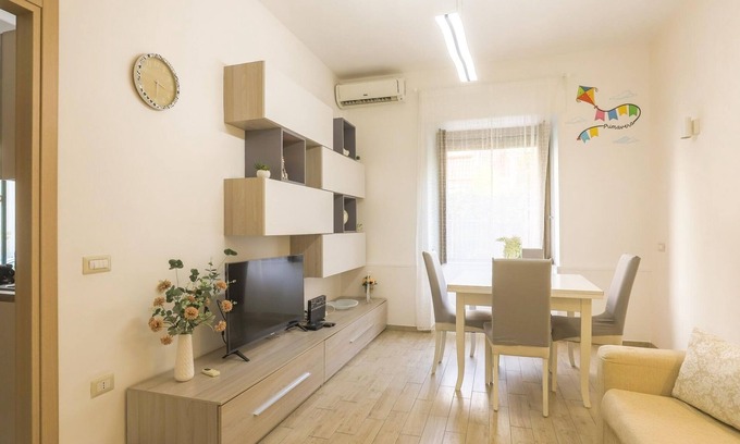 The two-room apartment is not far from Pontecagnano station, from here in 10 minutes it is possible to reach the city of Salerno and take the connections to the Amalfi Coast.